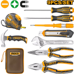 All tools are neatly organized and packed in a durable canvas bag for portability and storage.